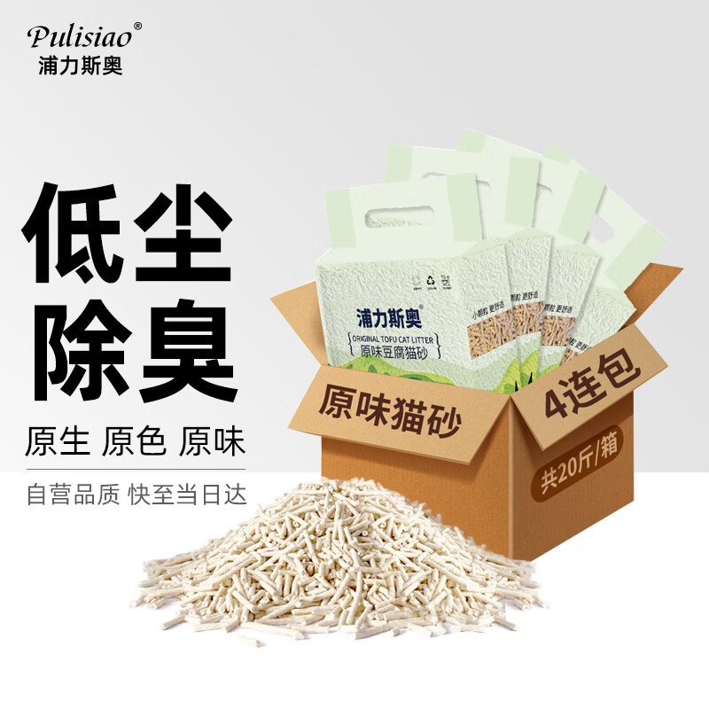 浦力斯奥猫砂20斤可冲厕所低尘吸水易结团豆腐砂猫咪用品原味豆腐猫砂10kg
