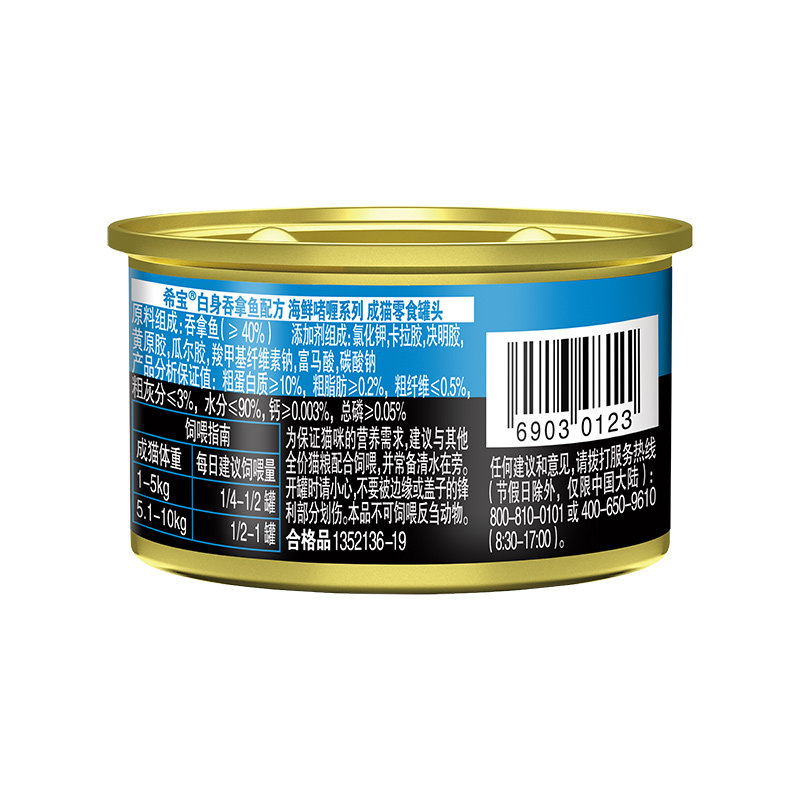 希宝猫罐头金罐85g*6罐白肉猫咪零食湿粮有效期至23年5月后进口