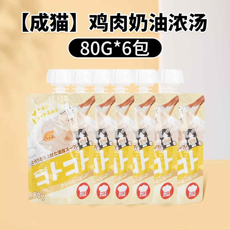 华元宠具(hoopet)地狱厨房猫零食咕噜酱金枪鱼鸡肉泥幼猫成猫增肥猫条湿粮 【成猫】鸡肉奶油浓汤-80g*6包