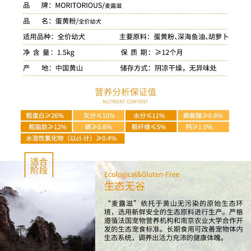 麦露滋(MORITORIOUS)蛋黄粉奶糕幼犬通用型狗粮法斗贵宾泰迪金毛阿拉斯加犬粮 蛋黄奶糕1.5kg