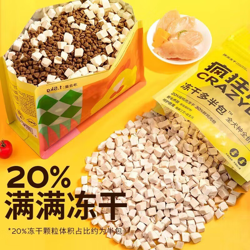 疯狂小狗狗粮冻干多半包冻干夹心狗粮小型犬柯基泰迪通用型犬粮 冻干多半包【旗舰款3kg】