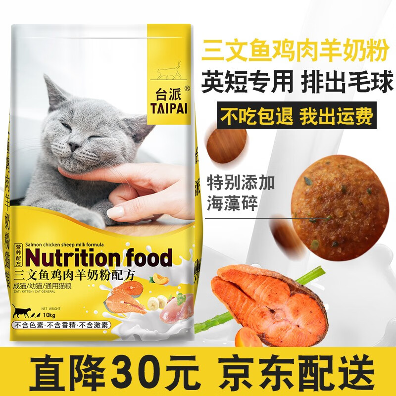 台派 猫粮10kg幼猫成猫英短蓝猫鱼肉味布偶流浪猫小猫全阶段增肥发腮天然猫粮20斤装