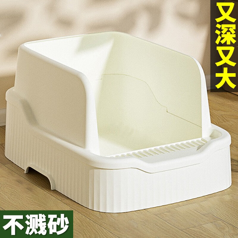 茨格曼猫砂盆特大号加深猫屎盆猫咪厕所肥猫猫砂盒盘布偶猫沙盆超大号 皓月白