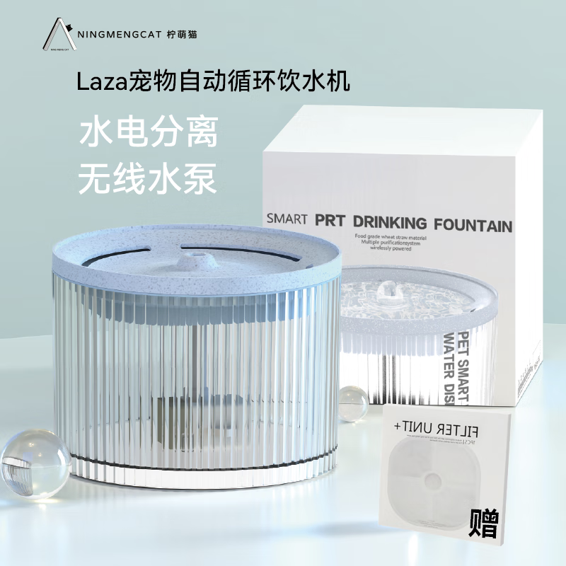 柠萌猫无线水泵智能宠物饮水机猫咪饮水机宠物用品无感应水电分离猫狗水盆自动循环过滤活氧大容量宠物净水器 白色 Laza