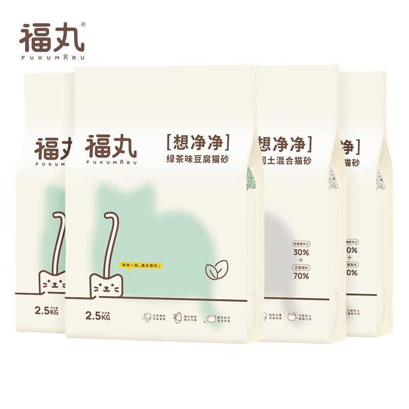 福丸混合猫砂除臭抑菌白茶清新 猫咪用品快速结团可冲厕所 绿茶豆腐*2 原味混合*2