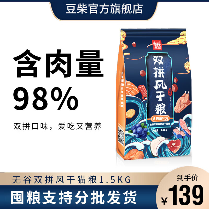 豆柴(docile)双拼风干猫粮全年龄阶段无谷配方幼猫成猫通用英短美短布偶猫适口性高肠胃调理 双拼风干猫粮1.5kg