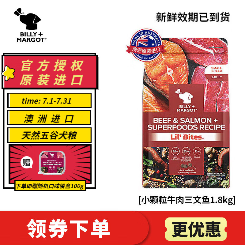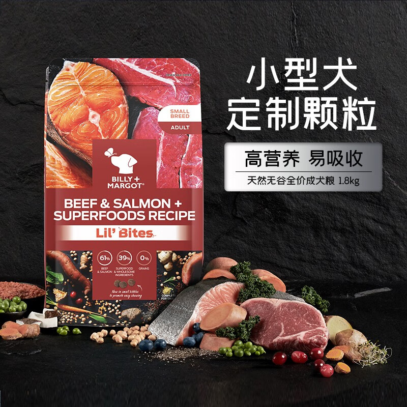 上海可发 比利玛格 Billy Margot宠物狗粮澳洲进口全价犬粮无谷低敏通用金毛泰迪狗狗主粮 小颗粒牛肉三文鱼1.8kg
