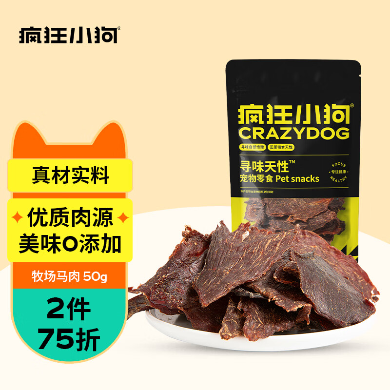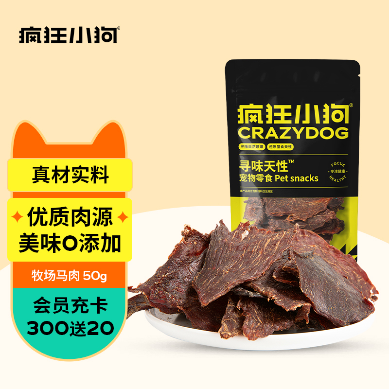 疯狂小狗 狗狗零食肉干幼犬成犬磨牙冻干训犬奖励寻味天性宠物零食 牧场马肉50g