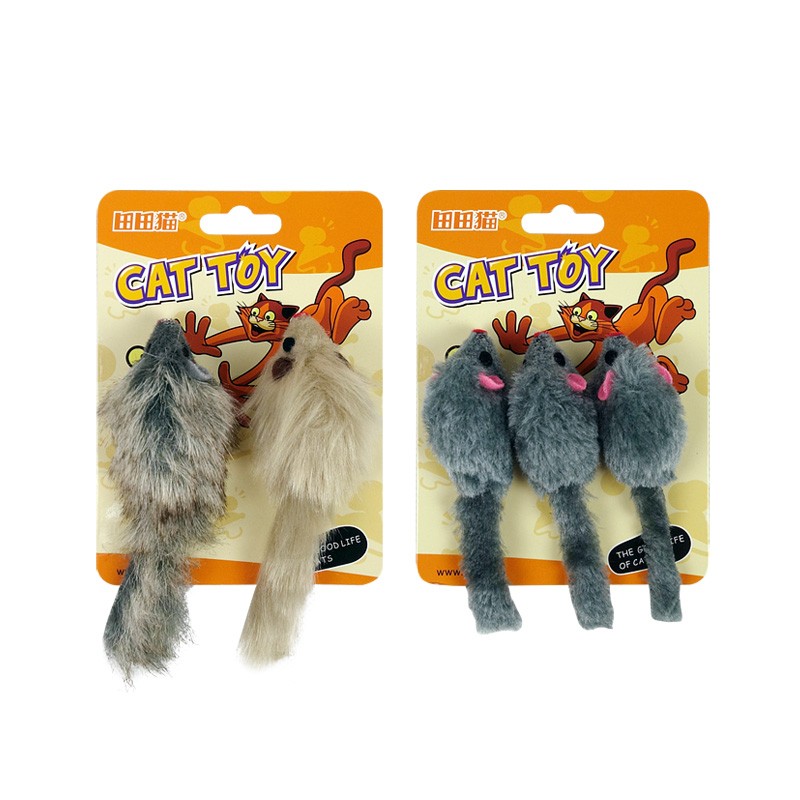 田田猫猫咪用品逗猫小老鼠猫玩具套装猫用品老鼠幼猫玩具 纯灰3只 长毛2只