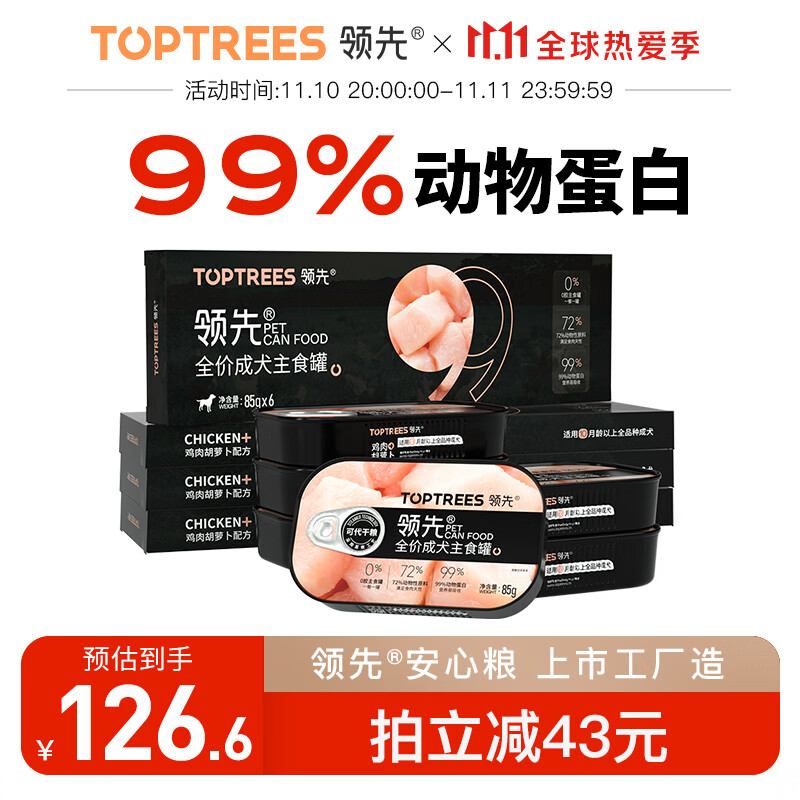 Toptrees领先主食罐囤货装 全价狗罐头小型犬成犬泰迪湿粮 【4盒】2040g(85g*24罐)