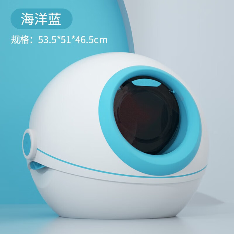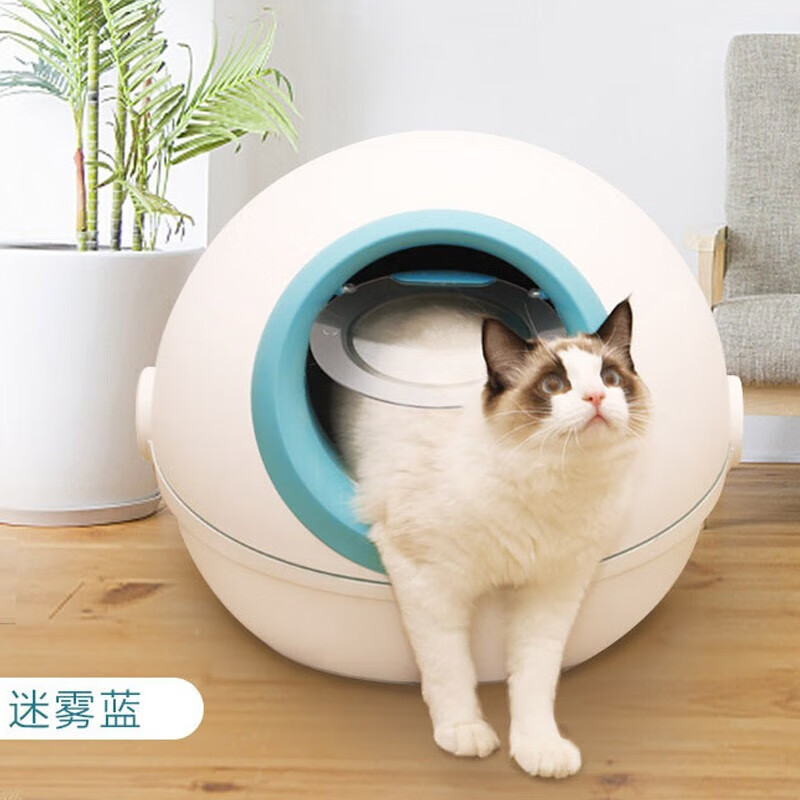 煜宠超大猫砂盆特大号全封闭式球形防外溅隔臭猫咪猫厕所太空舱翻盖 (梦幻蓝) 猫星球