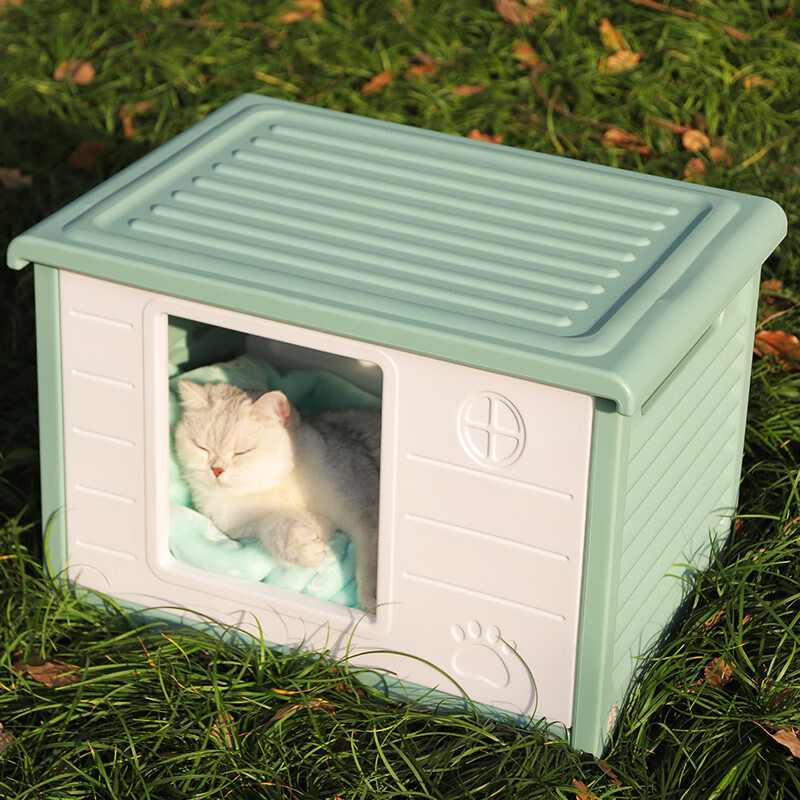 捣蛋鬼猫窝四季通用别墅狗窝房子狗屋室外半封闭式猫屋防雨防水防晒流浪猫户外窝冬季冬天保暖 户外防晒防雨宠物窝-绿 60.5*42*40.5cm(适用于30斤内)