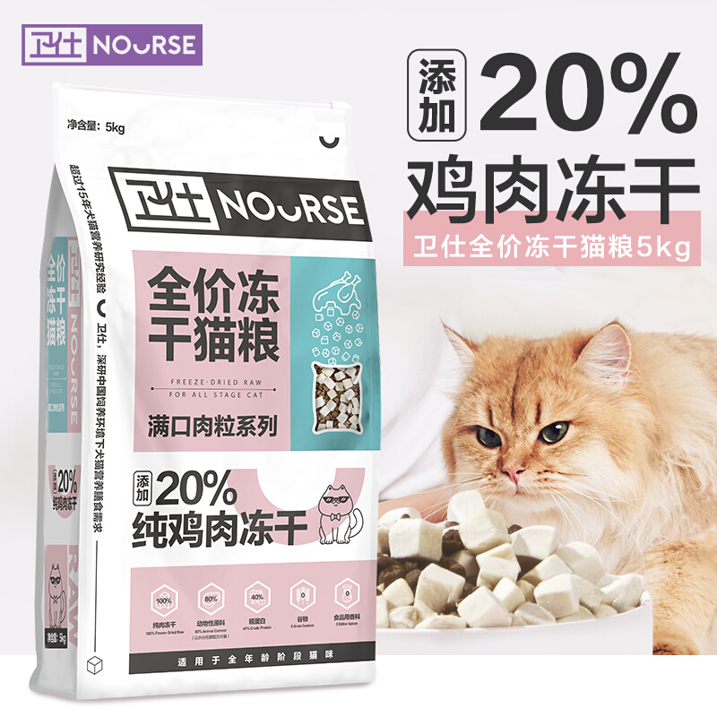 卫仕 全价冻干猫粮鸡肉味500g 增肥营养发腮卫士猫粮成猫幼猫通用 【胡歌代言】 【囤粮】冻干猫粮5kg