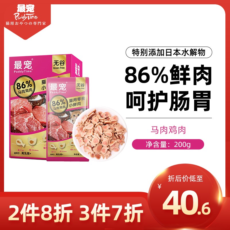 澳洲品牌 最宠(Paddy time)猫零食小鲜肉饼干 猫草薄荷去毛球泌尿健康拌粮湿粮包小鱼肉饼干宠 马肉鸡肉200g