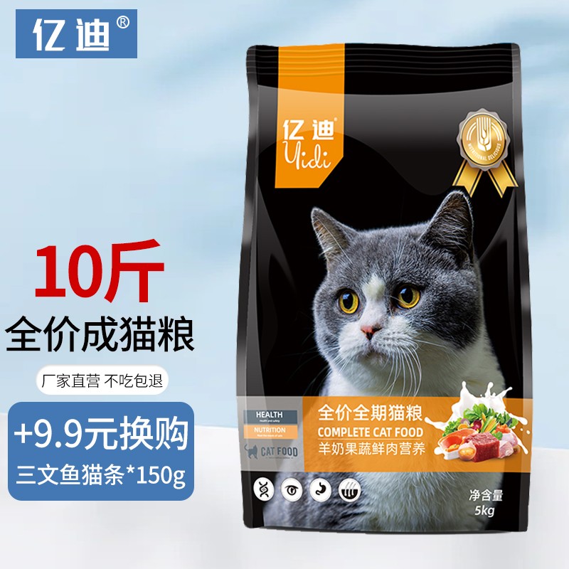 亿迪猫粮幼猫粮成猫干粮室内猫宠物猫美短英短布偶猫粮10斤装自营同款全期猫粮鱼肉味猫粮5kg 【优选丨实惠款】成猫粮丨5kg