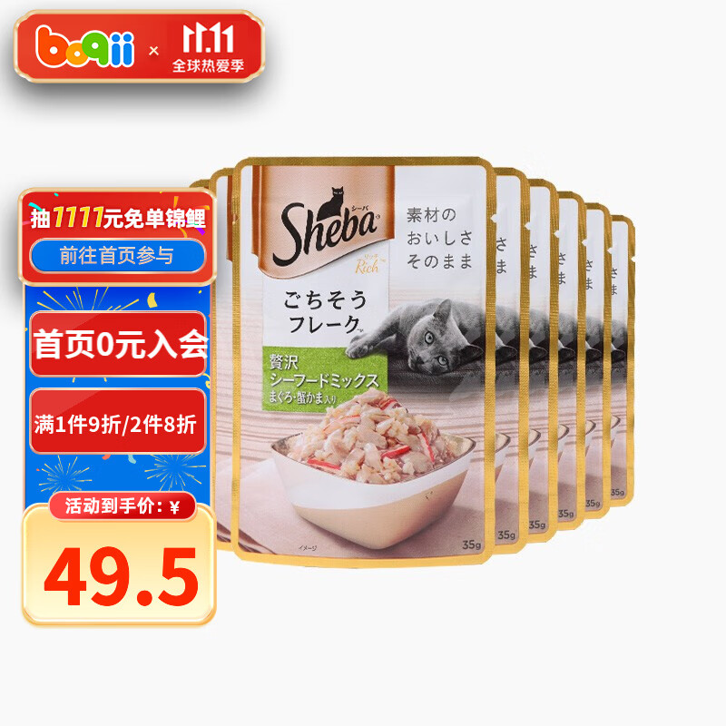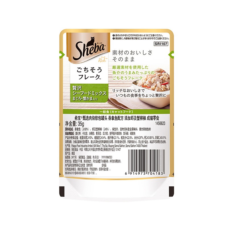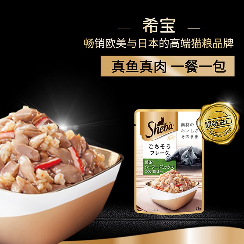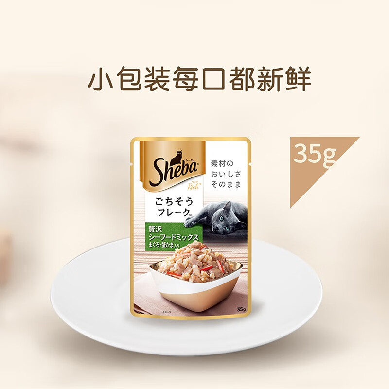 希宝(Sheba)猫湿粮零食 幼猫成猫大龄老年猫妙鲜包零食 宠物猫咪肉块软包 甄选肉块软包蟹柳海鲜盛宴成猫35g*12包