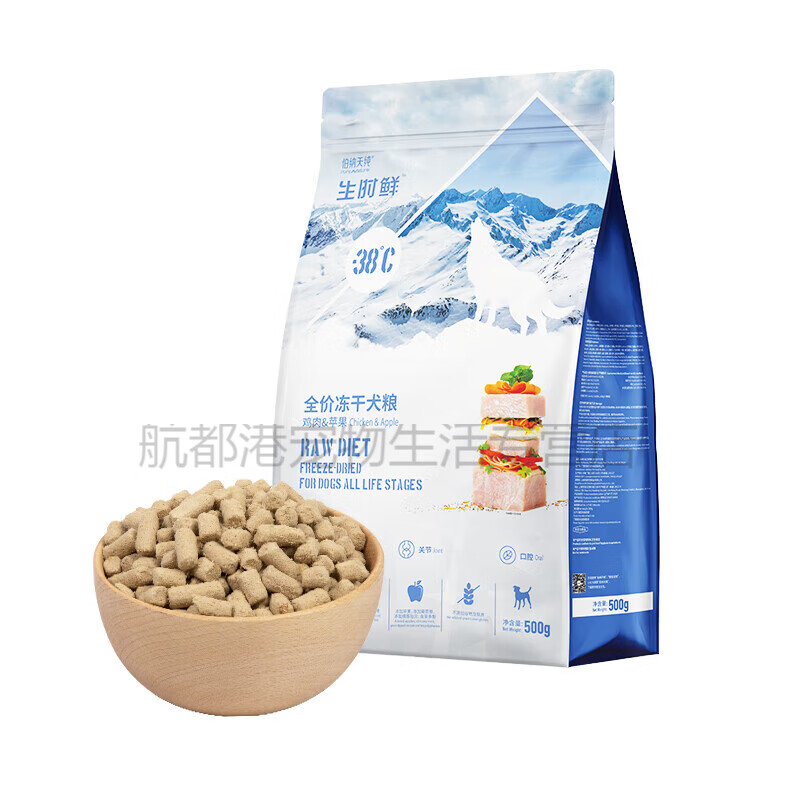 伯纳天纯生时鲜主食冻干狗粮500g成犬幼犬生骨肉冻干零食泰迪比熊 鸡肉苹果味 500g
