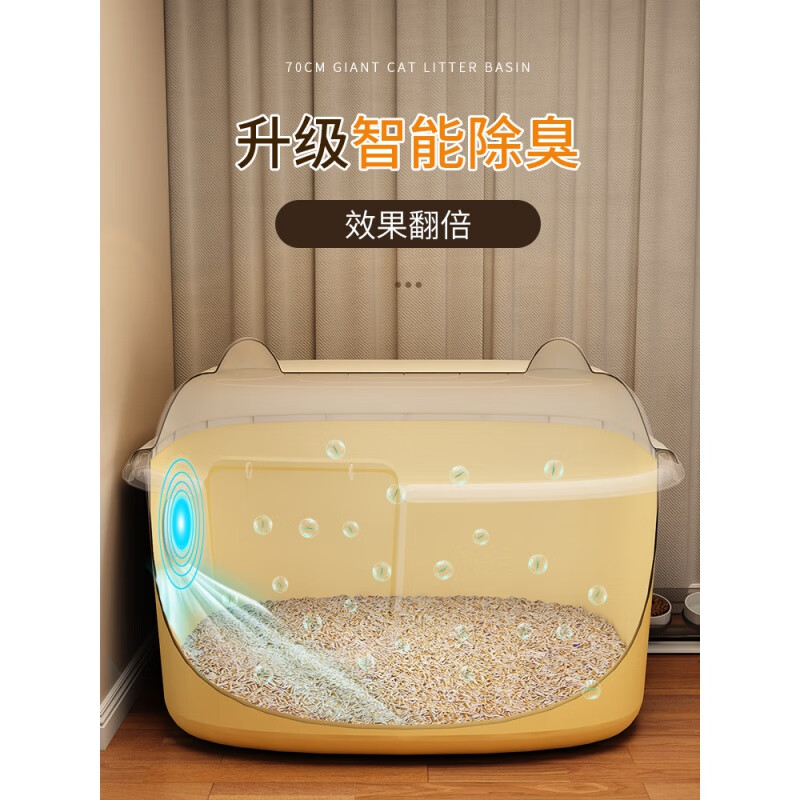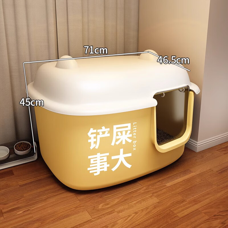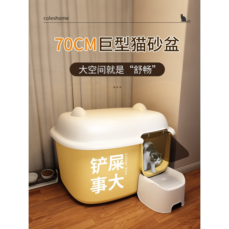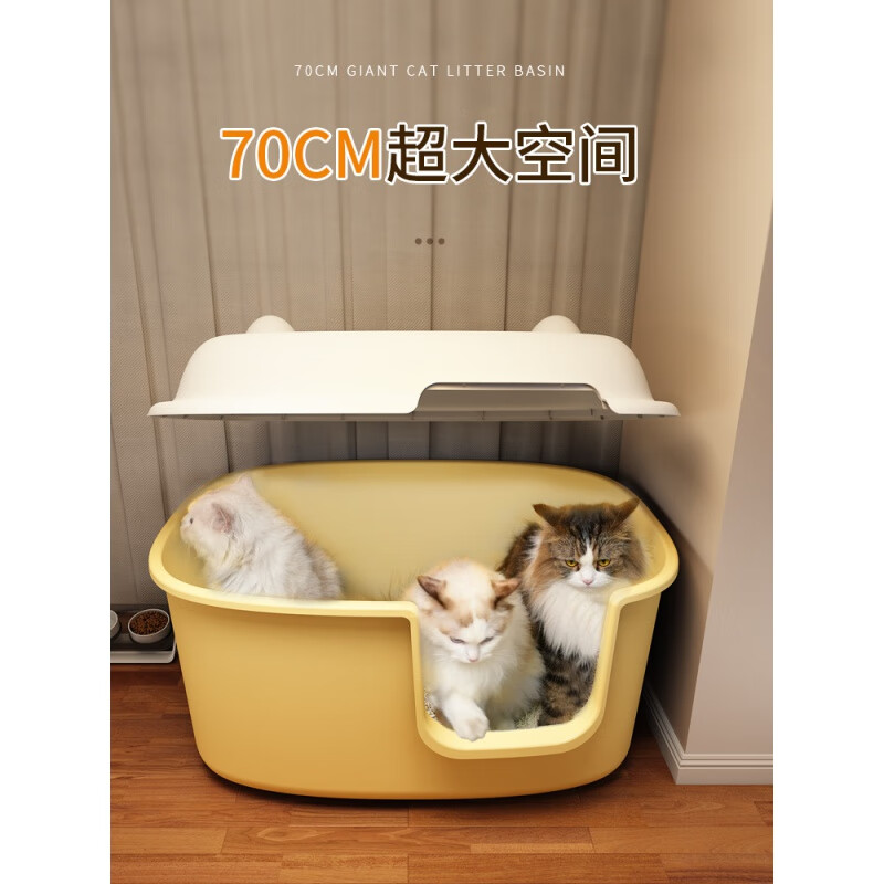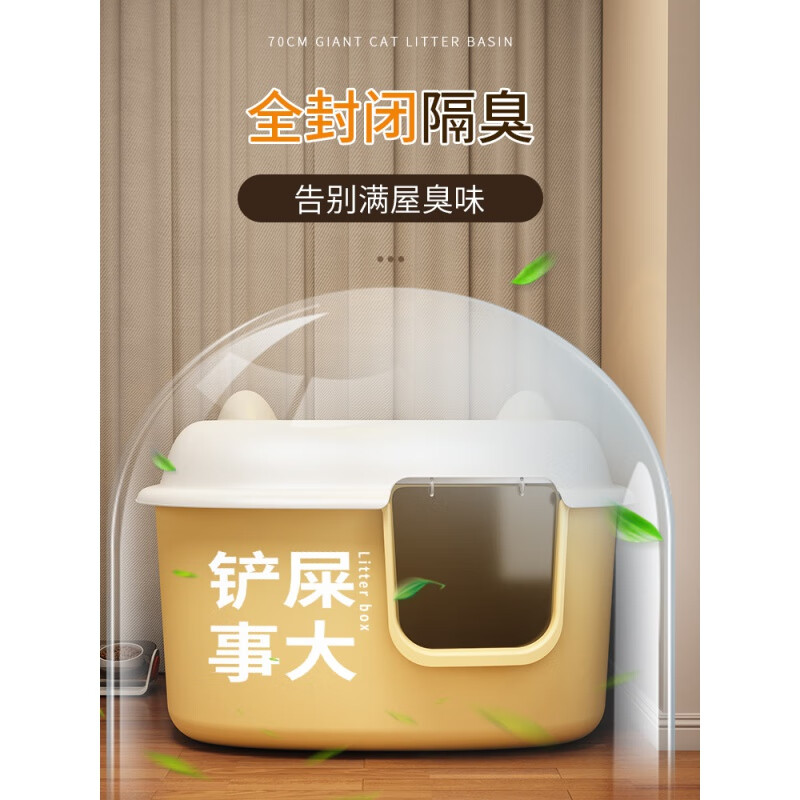 凡佰酷超大号全封闭式猫砂盆猫厕所防外溅猫咪特大猫沙盆子巨大猫屎盆子 黄【70cm巨无霸】全封闭更隔臭