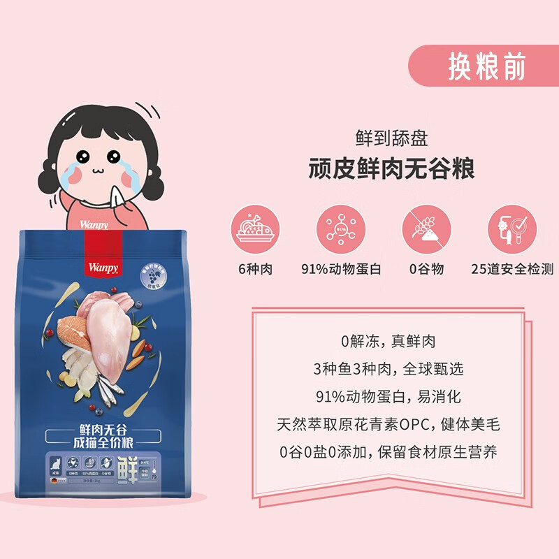 顽皮(Wanpy)鲜肉无谷成猫幼猫粮增肥发腮低敏易消化全价猫粮 7日换粮装350g