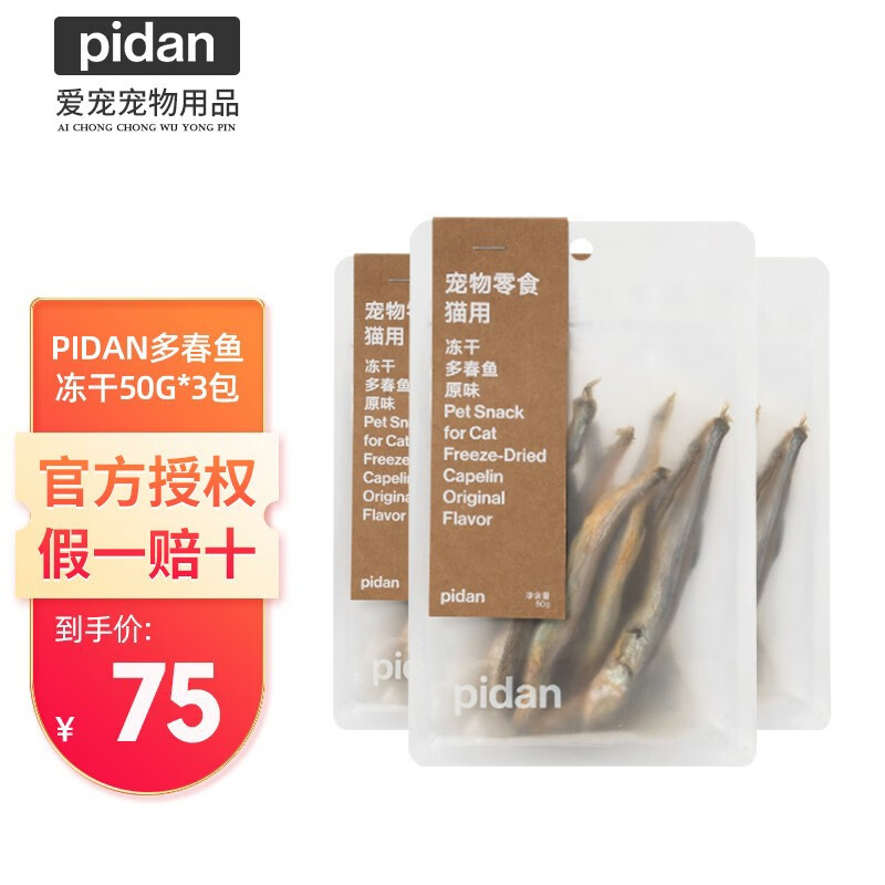 pidan皮蛋猫零食猫冻干小鱼干小猫咪零食50g多春鱼猫粮满籽幼猫 3包