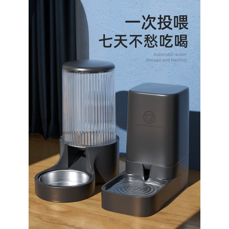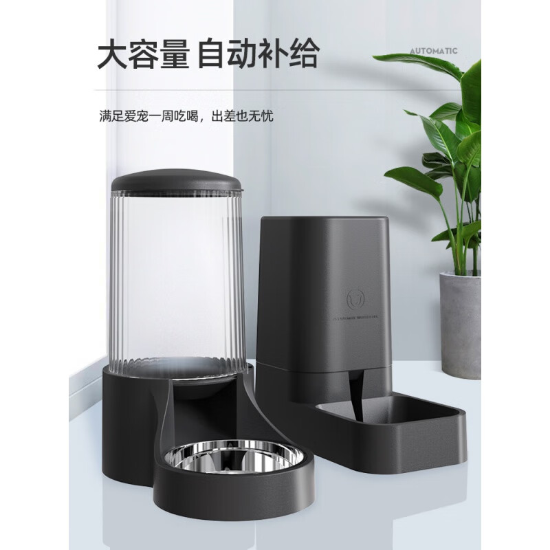 ABDT猫咪饮水机狗狗自动循环饮水器猫喝水器流动不湿嘴喂水碗宠物用品 lm2代-科技黑自动喂食喂水一体【