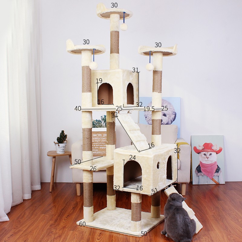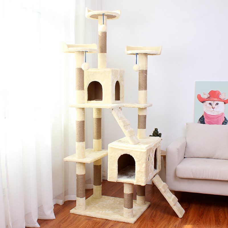 猫爬架1.85米五层大型豪华猫玩具猫架子剑麻宠物猫窝猫抓板猫抓柱猫跳台猫爬树猫咪用品 米色款 185*60*50cm