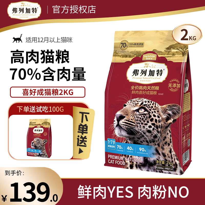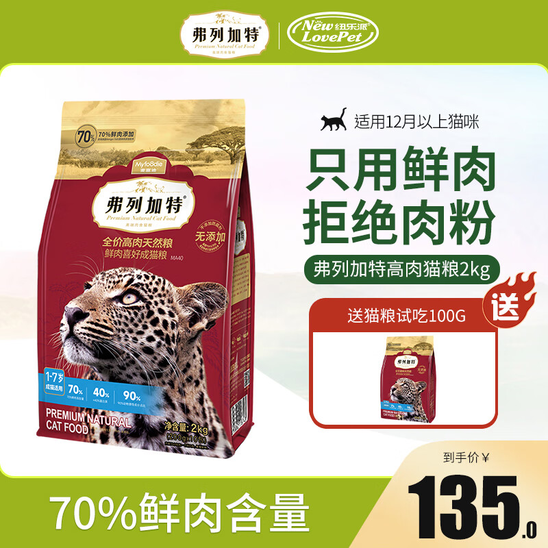 弗列加特高肉猫粮 成幼猫室内营养全价粮 喜好成猫粮2kg
