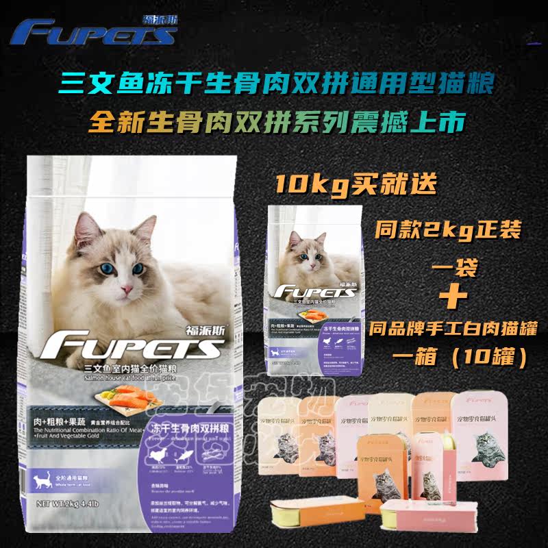 福派斯三文鱼冻干生骨肉双拼全价通用室内猫粮2kg10kg去毛球发腮