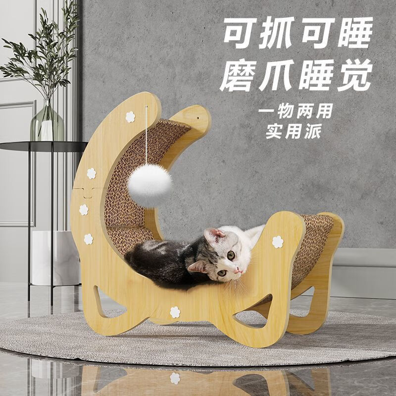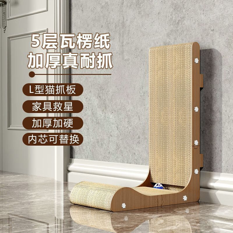 猫抓板窝耐磨不掉屑猫窝沙发防护猫爪板l型猫抓板特大号瓦楞纸立式猫咪磨爪板 ZK猫耳月亮船 收藏+猫薄荷