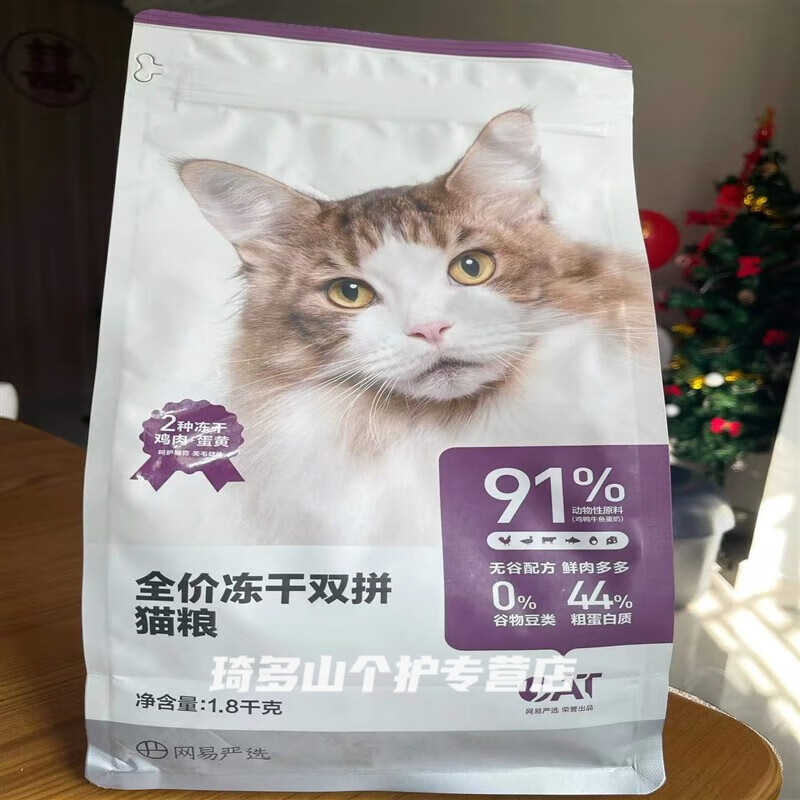 网易严选全价冻干双拼猫粮成幼猫美毛营养无谷鸡肉干粮 1.8千克/袋 冻干双拼猫粮1.8kg*1袋1.0经典 1.8kg