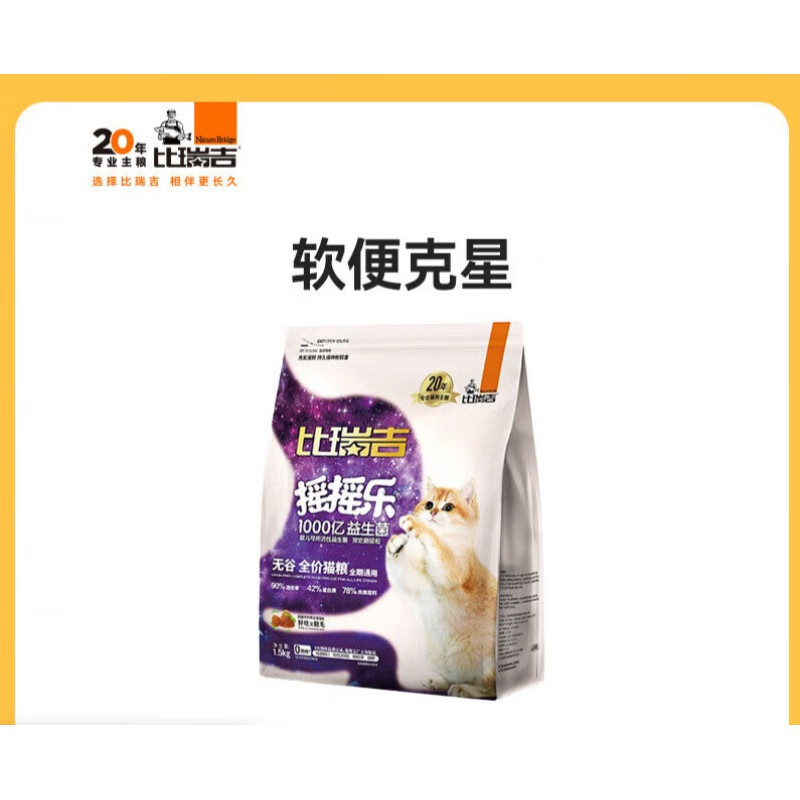 比瑞吉通用型成幼年全期猫粮主粮摇摇乐益生菌无谷全价猫粮1.5kg 添加益生菌软便克星无谷全期猫粮 1.5kg