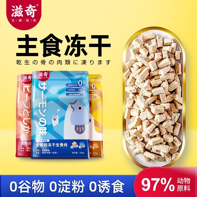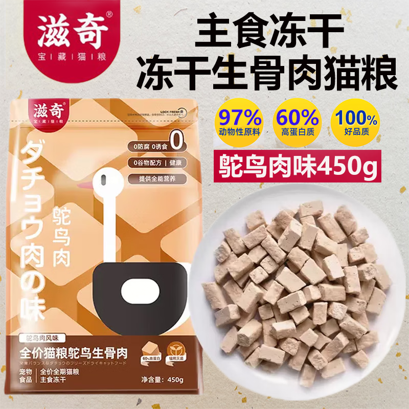 滋奇(Ziiky)全价生骨肉主食冻干 牛肉鹿肉兔肉鸡肉鱼肉幼猫成猫粮宝藏主粮 【冻干】鸵鸟肉450g/袋