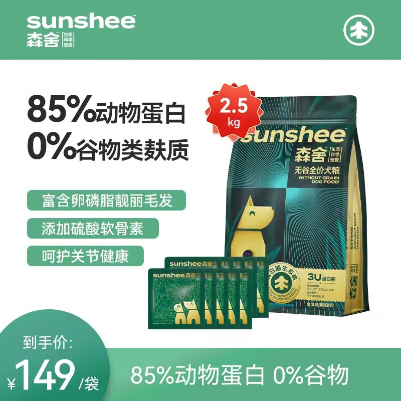森舍无谷低敏全价鲜肉狗粮2.5kg/袋 全犬种通用 全价粮均衡营养 狗粮*1袋【5斤】 狗粮便携*10袋【2.4斤】