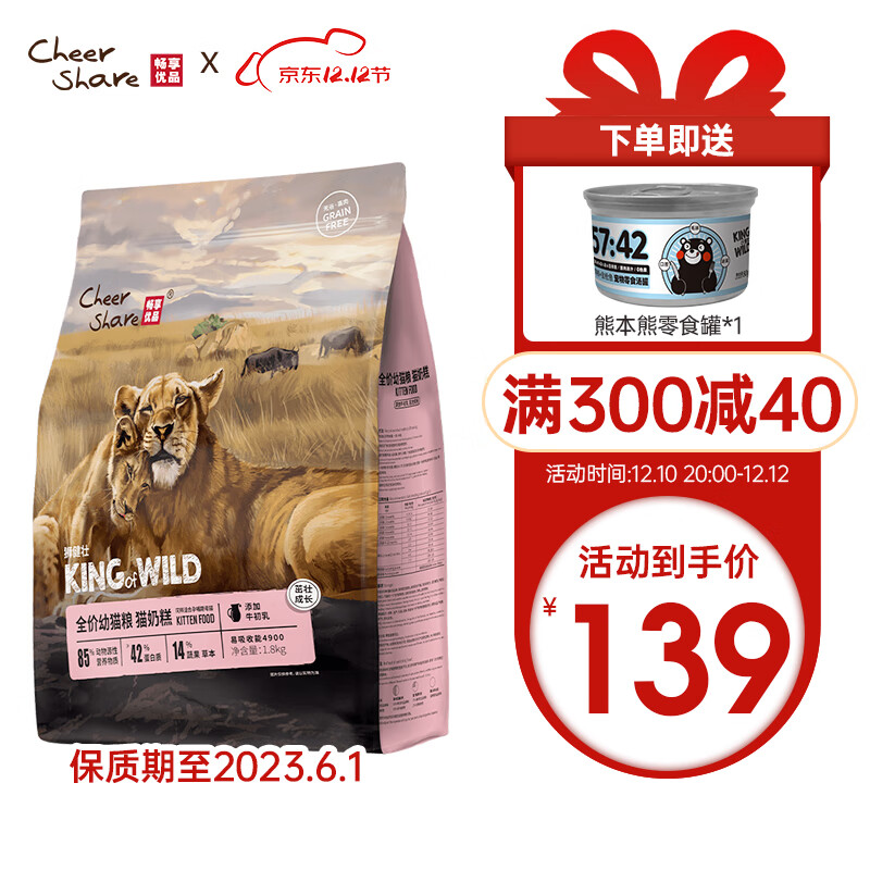 畅享k系列猫粮幼猫奶糕1.8kg 1-12月龄幼猫天然粮 无谷高肉低敏易吸收添加牛初乳