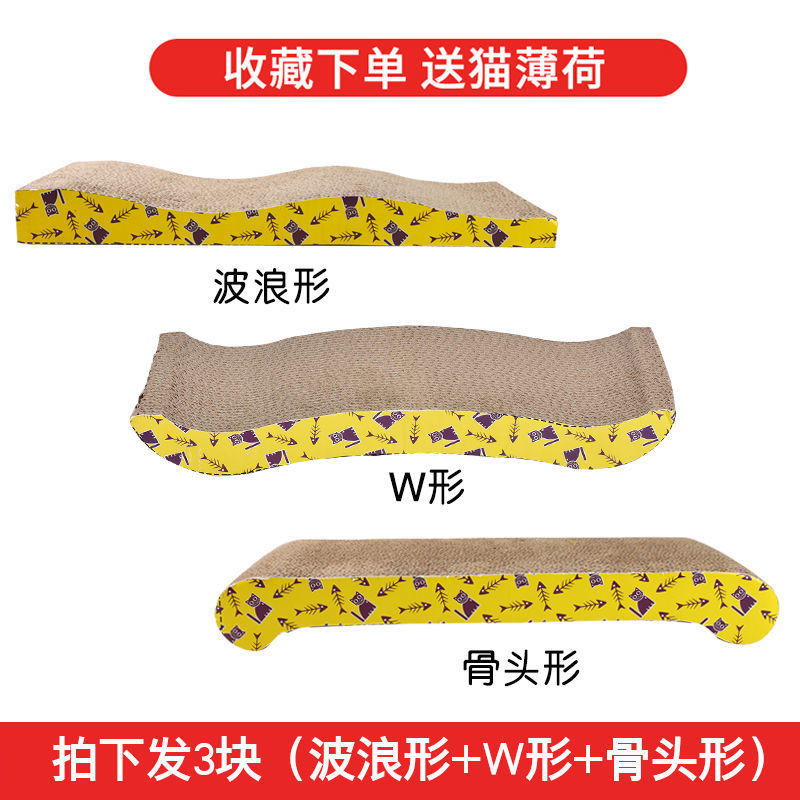【工厂直发】猫抓板磨爪器猫爪板瓦楞纸猫抓垫猫咪玩具磨抓板猫窝玩具猫咪用品地狼 3个大号波浪 W形 骨头收藏 猫薄荷