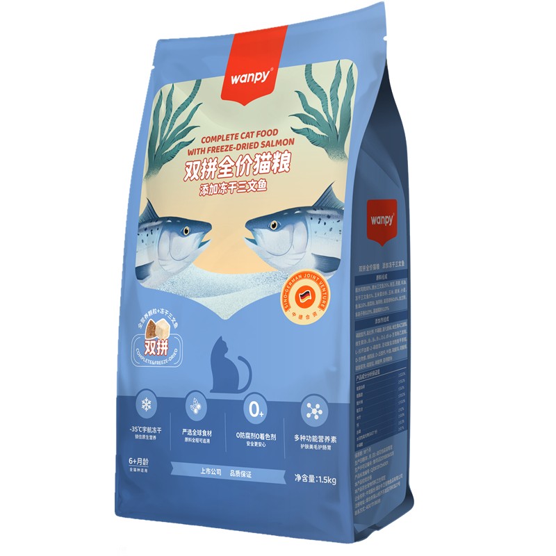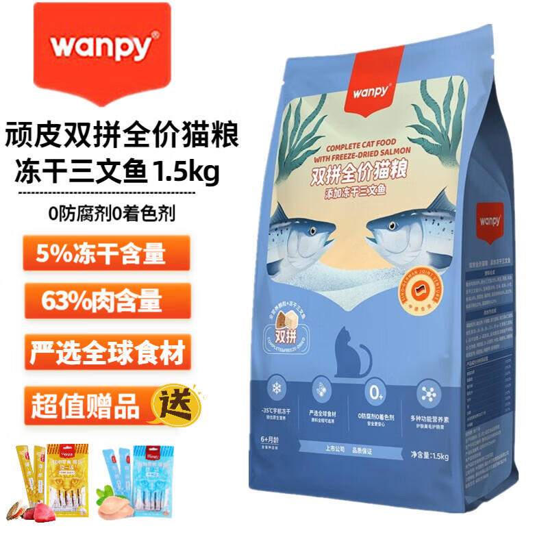 顽皮(Wanpy)猫粮双拼冻干鸡肉全价猫粮成猫幼猫增肥发腮英短布偶全期粮 1.5kg冻干三文鱼猫粮