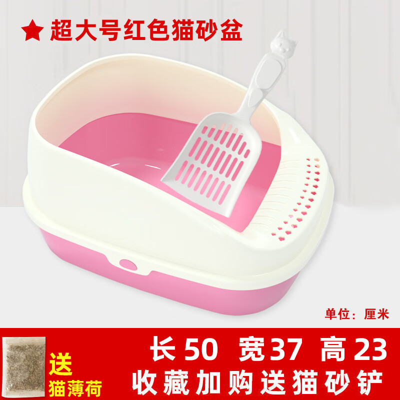 猫砂盆防外溅半封闭式猫厕所特大号超大猫沙盆防臭猫屎盆猫咪用品 【粉色超大号高围栏】收藏下单餸猫铲