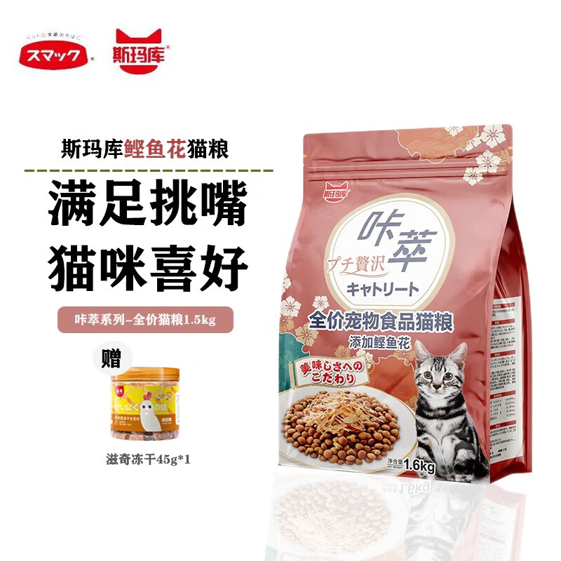 斯玛库 日本品牌咔萃系列全价宠物猫粮 添加的鲣鱼花成猫幼猫通用猫粮 咔萃鲣鱼花全阶段猫粮1.6kg