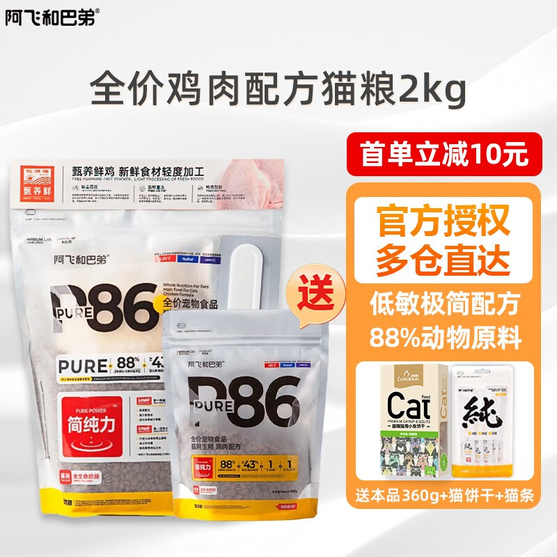 阿飞和巴弟P86无谷猫粮 2kg冻干生骨肉成猫全阶段猫粮 p86 2kg