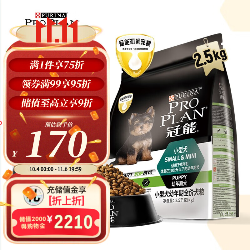 冠能(PRO PLAN)狗粮 小型犬幼犬狗粮奶糕 富含牛初乳 柯基博美泰迪比熊雪纳通用型 2.5kg