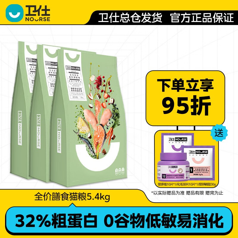 卫仕全阶段猫粮 全价幼猫成猫 布偶英短田园猫通用型 卫士0谷物猫粮 【成猫】全价膳食猫粮5.4kg
