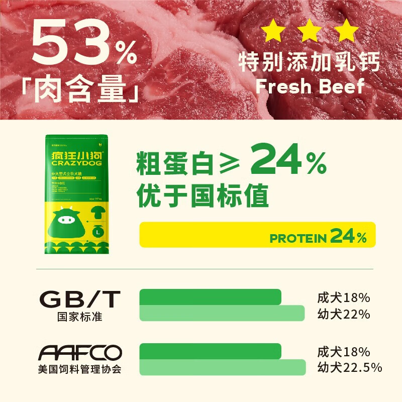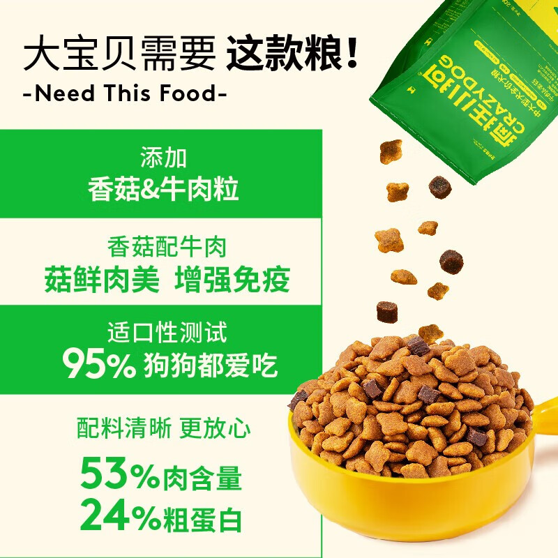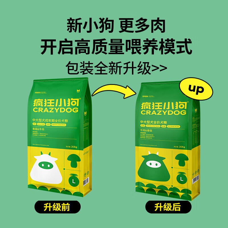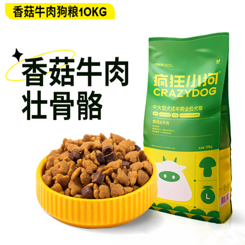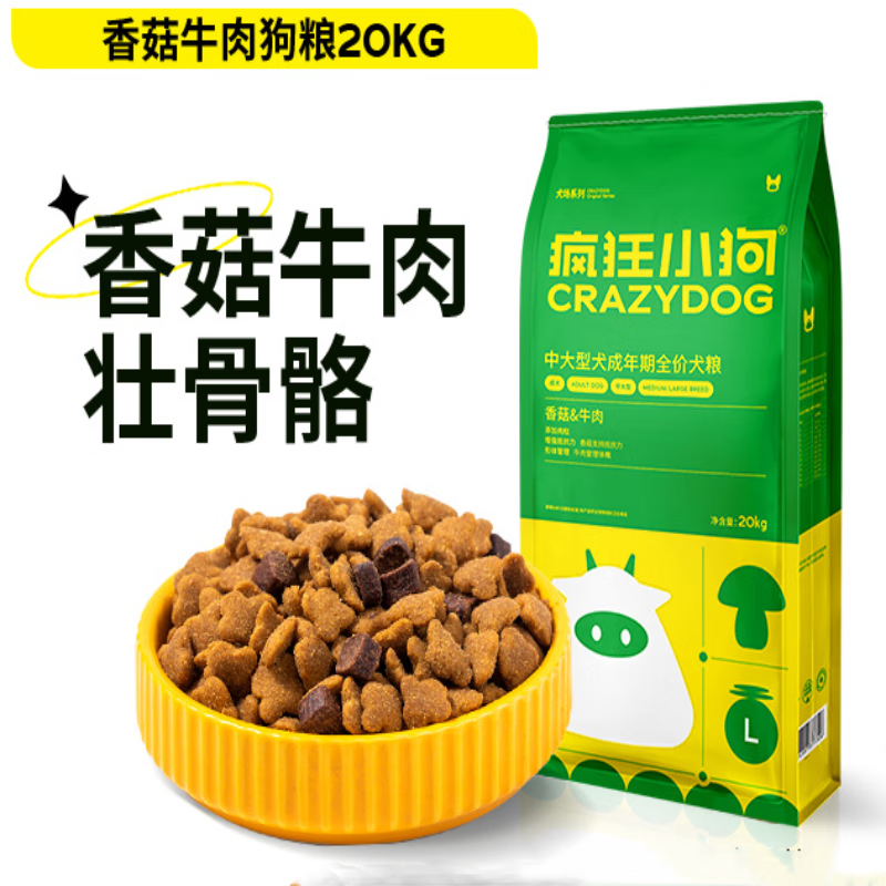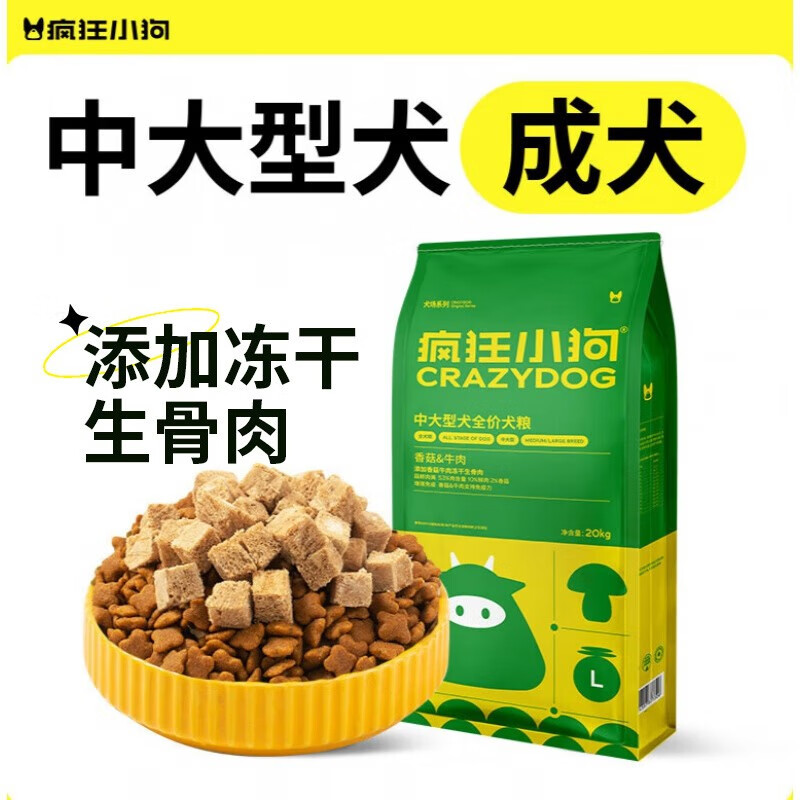 疯狂小狗香菇牛肉狗粮冻干生骨肉犬粮40斤装金毛边牧大型犬通用型成犬粮 香菇牛肉20kg(40斤)