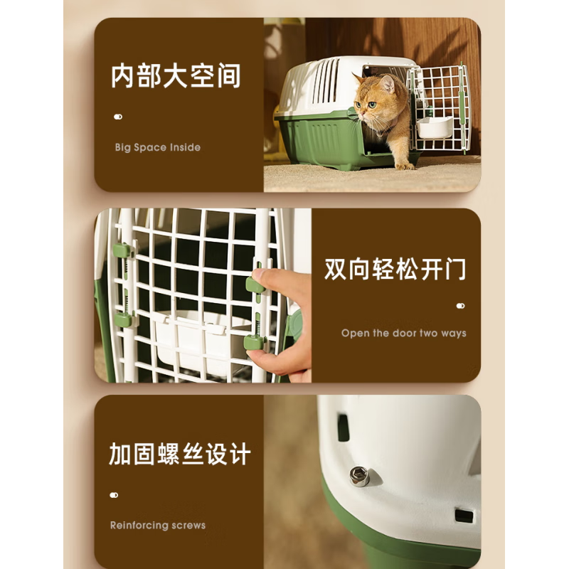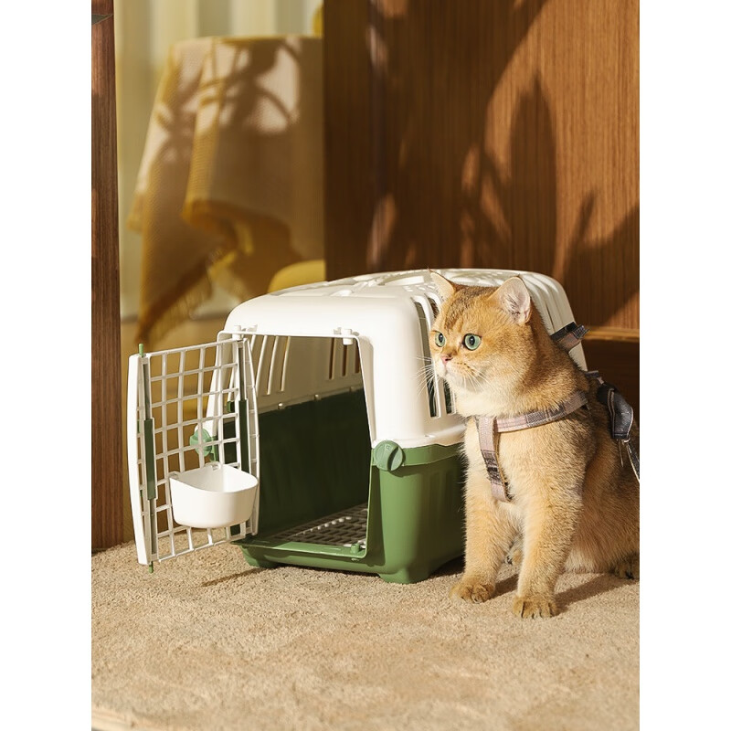 CLCEY银渐层猫航空箱猫咪外出便携宠物狗笼子小型犬运输太空猫包托运箱 烟雨粉【隔尿板 挂碗】 犬猫通用;猫咪15斤内适用