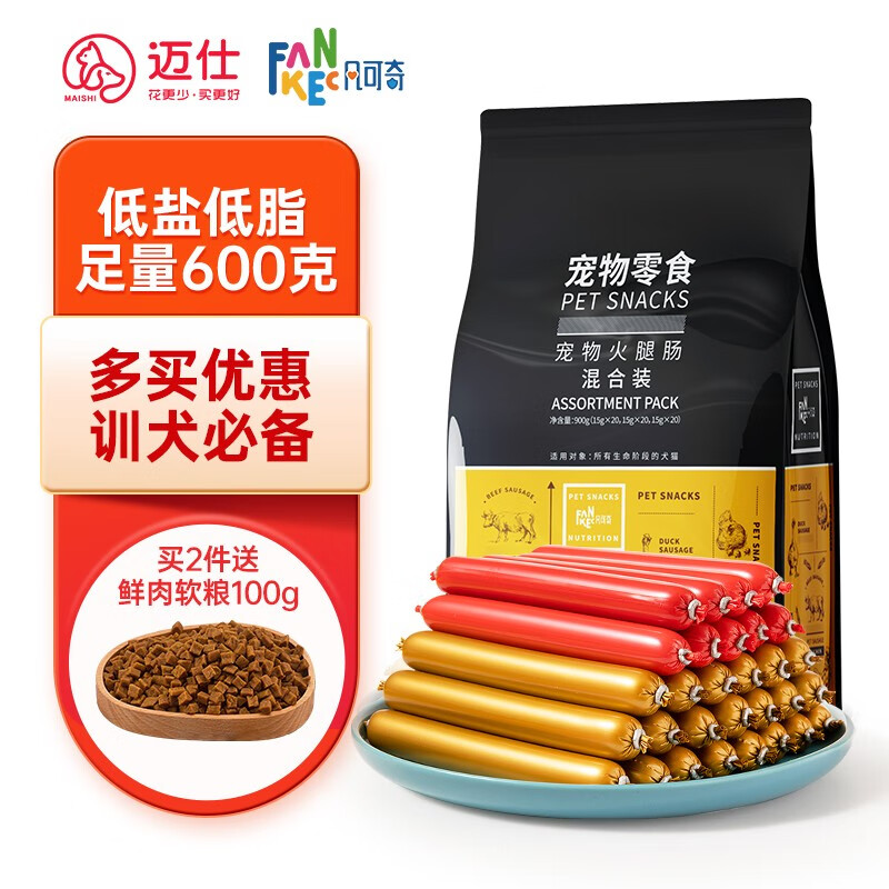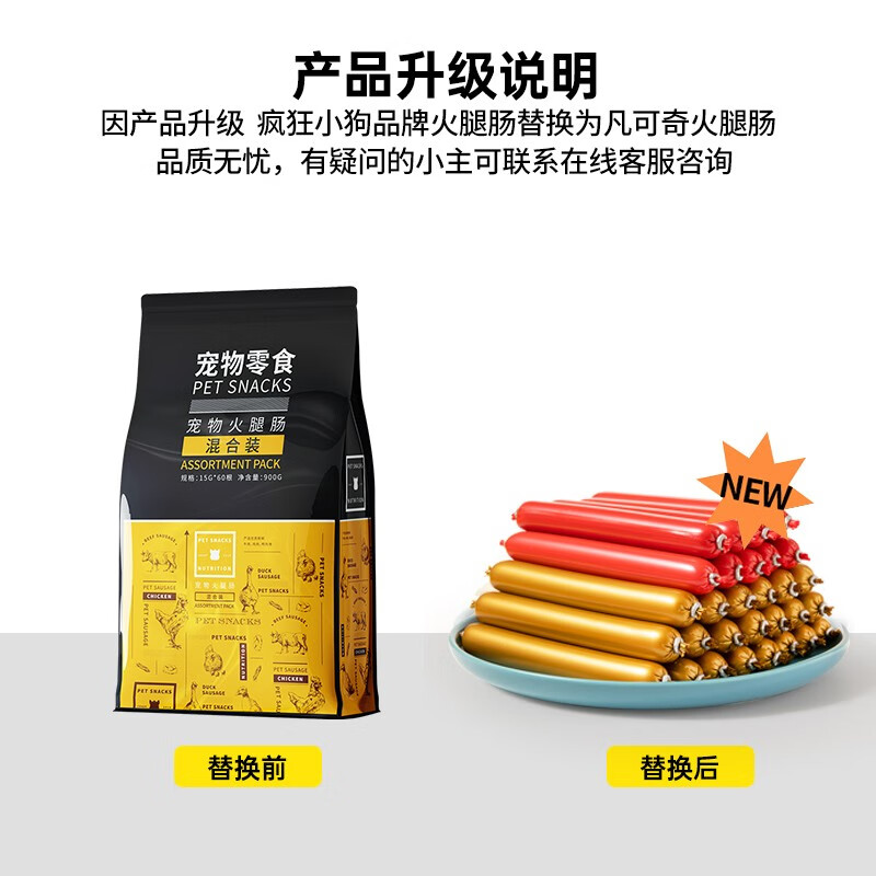 凡可奇 狗火腿肠60根900g疯狂小狗宠物幼犬成犬 狗零食肉类零食 混合口味900g