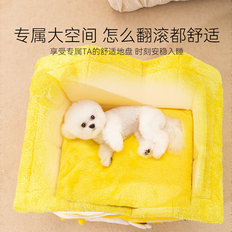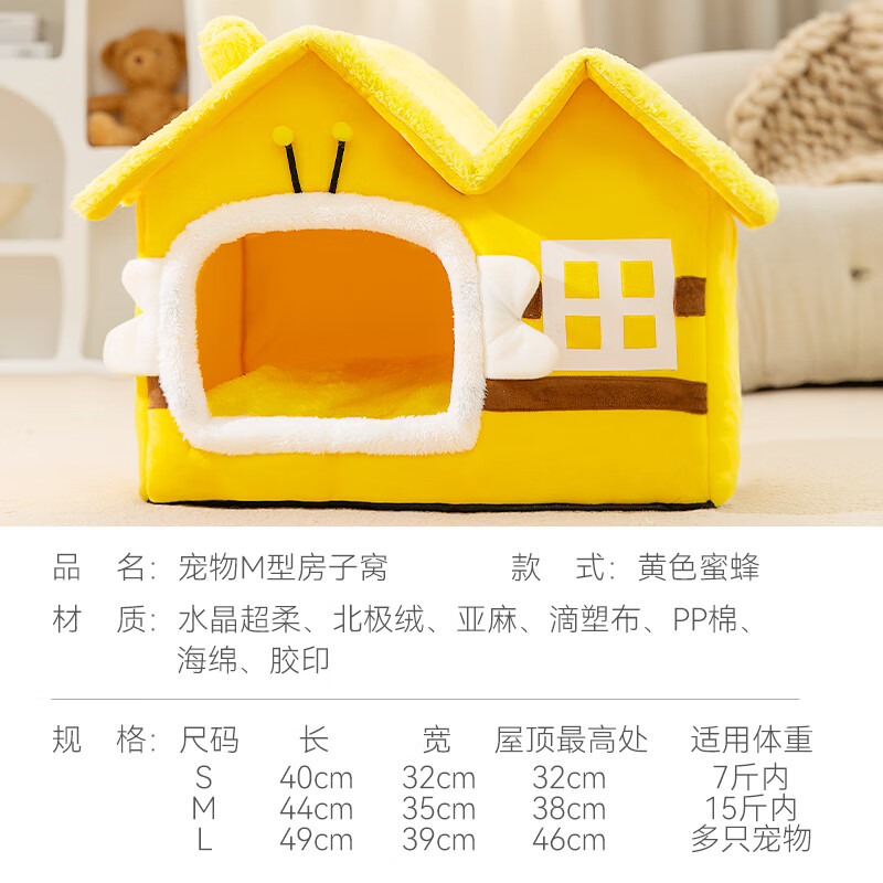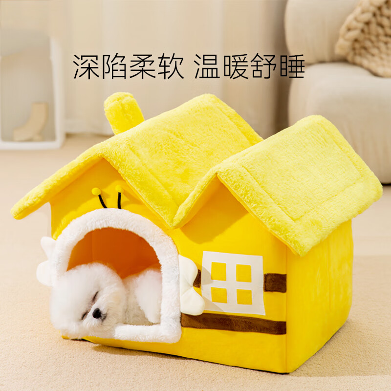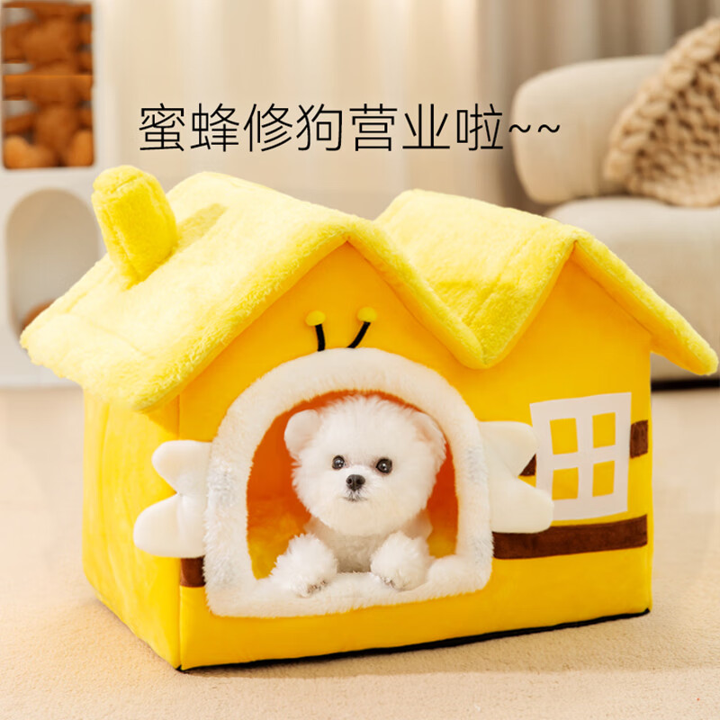 嬉皮狗(hipidog)小蜜蜂双顶M型狗窝可拆洗狗房子四季通用猫窝秋冬季狗窝宠物窝 黄色蜜蜂 S(建议体重7斤内)