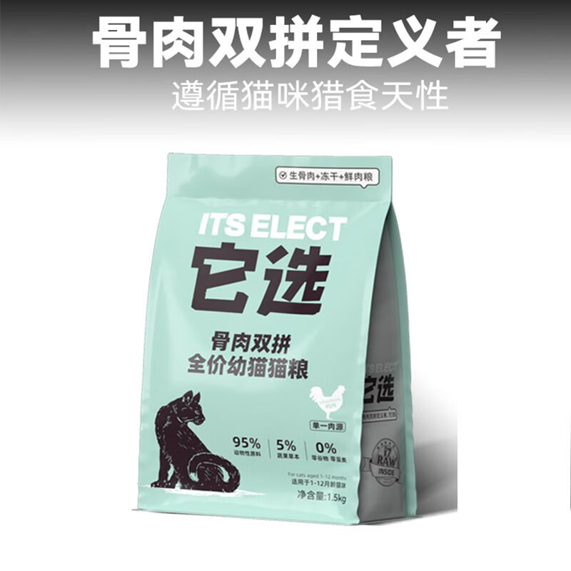 它选猫粮幼猫专用冻干生骨肉1-12月小猫高蛋白夹心无谷全价猫粮试吃装 50g 试吃装