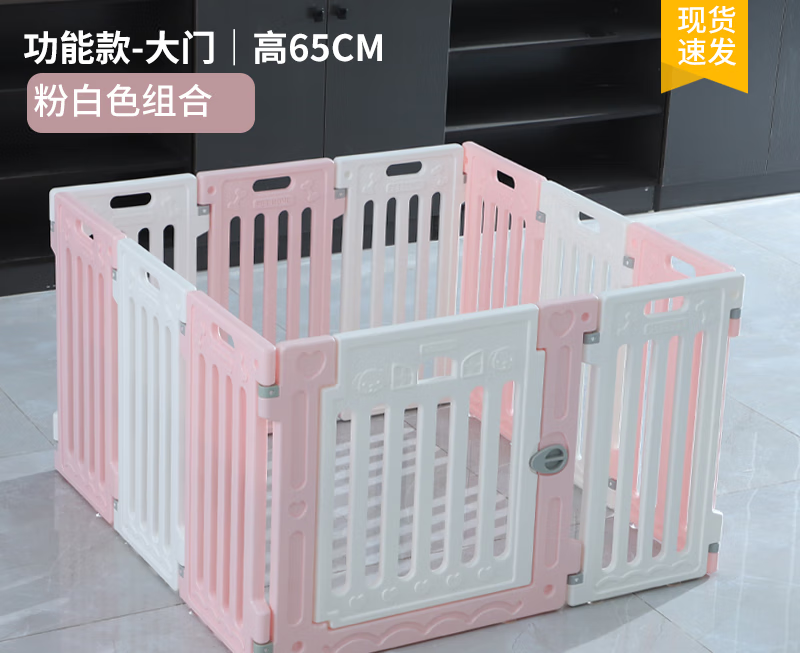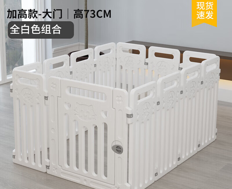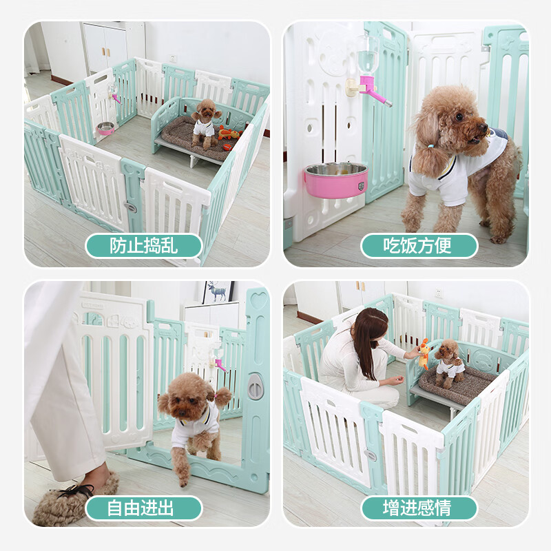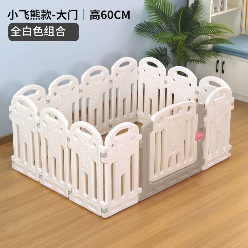 狗狗笼子宠物围栏室内自由组装塑料栅栏家用隔离栏防越狱中小型犬 小飞熊款】全白组合(高度60CM) 6片 1门长70x宽70CM