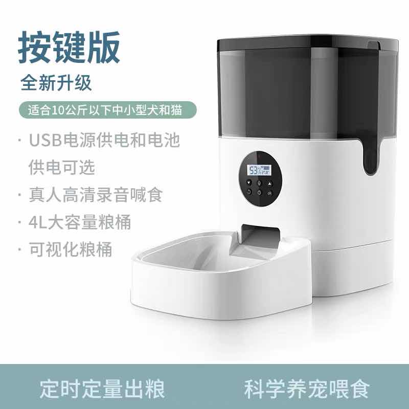 蒂乐森宠物自动喂食器猫狗智能定时定量投食机智能喂食器猫咪用品 小白4L(透明款)按键版
