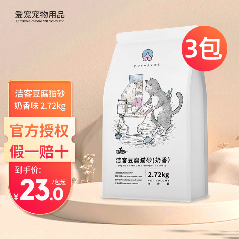 洁客猫砂 懒人猫砂混合猫砂绿茶豆腐猫砂除臭无尘易结团可冲马桶猫沙 【奶香】豆腐猫砂 2.72kg*3包