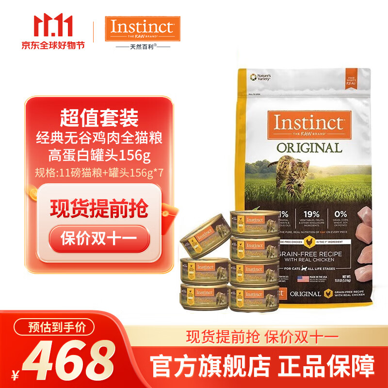INSTINCT生鲜本能 百利经典无谷系列鸡肉全猫粮幼猫成猫适口性佳英短美短 无谷鸡11磅 156g罐头*7个